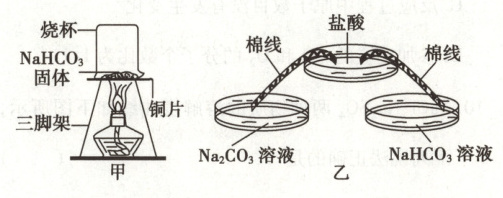 (5)用实验 1 装置给 $NaHCO_{3}$ 加热一段时间后,停止加热。冷却后,取铜片上的白色固体于试管中,滴加稀盐酸,有气泡产生。该现象能否得出“$NaHCO_{3}$ 加热后生成了 $Na_{2}CO_{3}$”的结论?________(填“能”或“不能”),其理由是________。