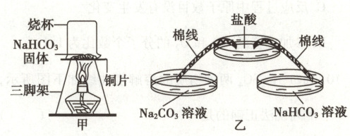 【进行实验】用下图甲装置探究 $NaHCO_{3}$ 的热稳定性。