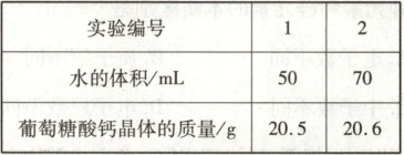 。③控制其他条件相同,实验室中取两份相同质量的 CaO,分别加入 50 mL、70 mL 的水制得石灰乳,与葡萄糖酸反应后,最终所得葡萄糖酸钙晶体的质量见表。根据实验结果,实际生产制备葡萄糖酸钙晶体时,选择向每份质量的 CaO 中加水 50 mL 而非 70 mL,原因是____。