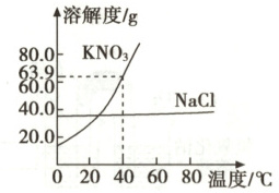 )A.$40^{\circ}C$时 NaCl 的溶解度比$KNO_{3}$小