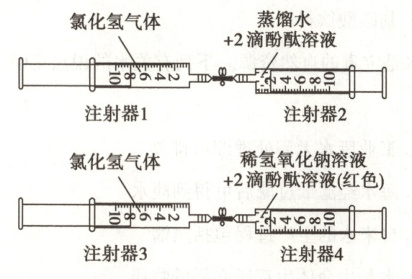 (6)氯化氢溶于水也可导致注射器4的活塞恢复至2mL刻度附近(或注射器2中没有发生酸碱中和反应,且注射器2、4的活塞均恢复至2mL刻度附近,因此不足以说明注射器4中氯化氢与稀氢氧化钠溶液发生反应)