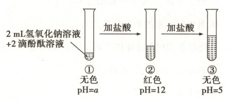 剂,再逐滴加入盐酸,振荡,该过程中溶液的颜色和pH记录如图所示。(3)在①中未观察到预期的红色,为探明原因,小组同学查阅到酚酞变色范围如下: