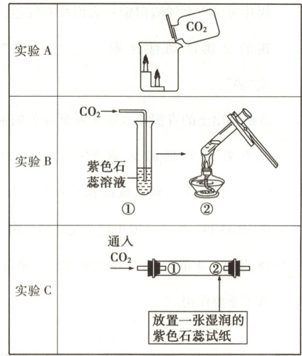 (3)实验 A:观察到蜡烛自下而上依次熄灭,由此得知 CO₂具有的物理性质是