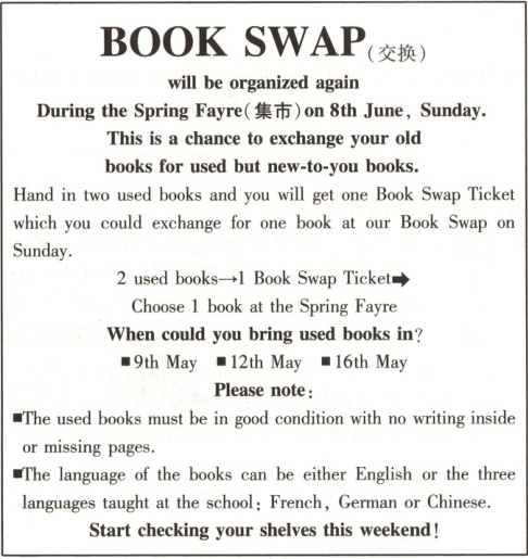 ()2. How many Book Swap Tickets can you get if you hand in two used books?