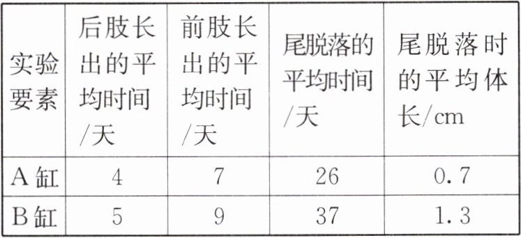步骤③:A缸隔天加入甲状腺激素5mg,持续5次,B缸不加甲状腺激素,其他培养条件相同。