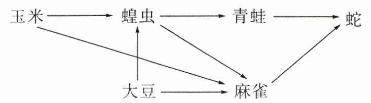 (3)仅考虑图中玉米、蝗虫、麻雀三者之间的食物关系,若麻雀获得1千焦能量,其中4/5来自玉米,1/5来自蝗虫,能量传递效率按20%计算,则需要消耗玉米的能量为