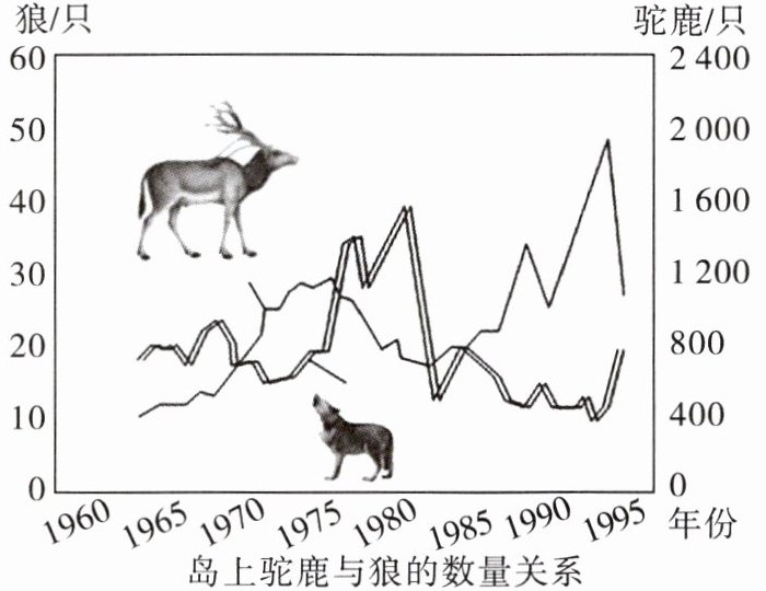 10.在某岛上狼是驼鹿唯一的天敌,而驼鹿也是狼唯一的食物来源,狼和驼鹿完全依靠彼此而生存。20世纪50~90年代,科学家对岛上驼鹿的数量与狼的数量进行了持续调查,结果发现岛上驼鹿的数量与狼的数量具有一定的关系,如图所示。下列叙述正确的是 (