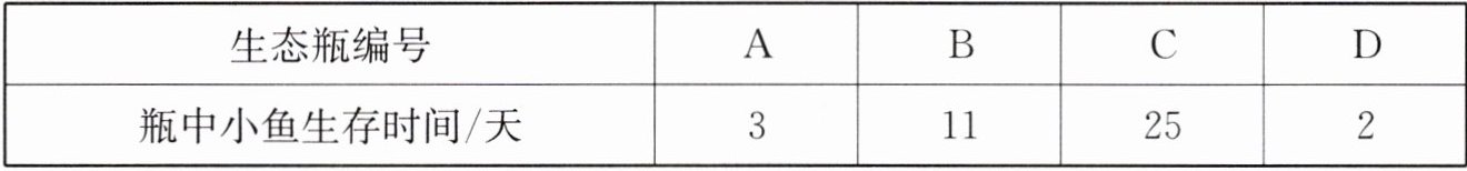 为小鱼的生存提供了营养物质和氧气。(5)瓶中所有生物生活所需要的能量最终来源于