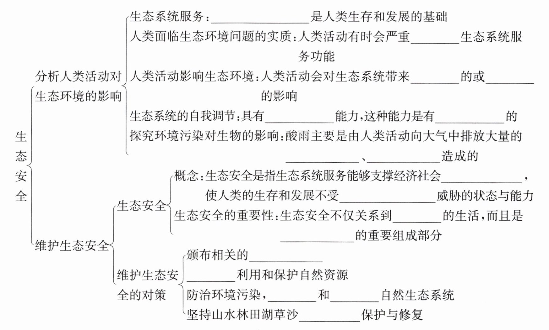 生态系统服务 削弱 消极 积极 自我调节 一定限度 二氧化硫 氮氧化物 可持续发展 生态环境问题 个人 国家安全 法律法规 合理 保护 修复 一体化
