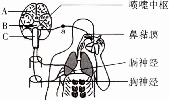 中的喷嚏中枢,而膈神经、胸神经都属于传出
