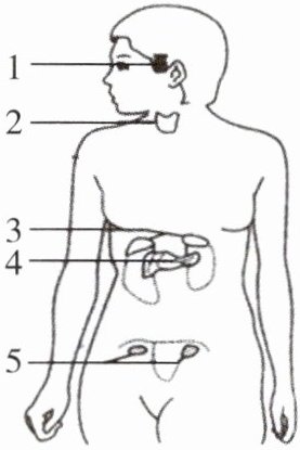 7.激素在人的生长发育过程中,起到了重要的调节作用。如图是构成内分泌系统的主要内分泌腺示意图,请据图回答: