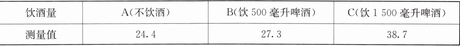 。(3)表格中显示饮酒量越多,测量值越大,说明反应速度越
