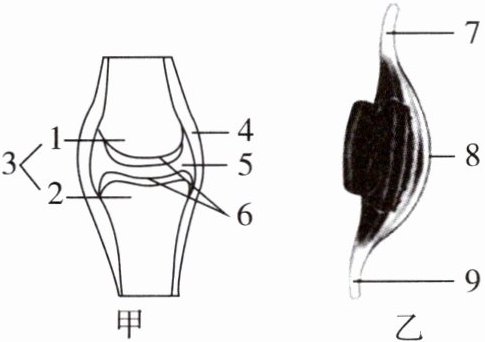 8.校园内的“阳光体育”活动促进了青少年的健康成长。甲、乙两图分别是关节和骨骼肌的结构示意图。下列叙述正确的是(