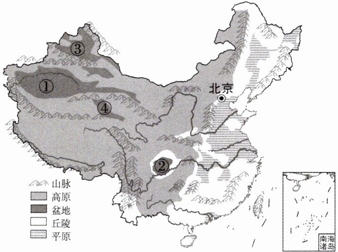 3.(教材P34活动1改编)我国山脉纵横交错,构成了地形的“骨架”,其他地形类型镶嵌其中。下列位于山脉之间的地形区名称正确的是 (