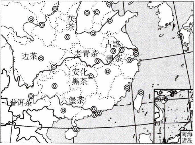 中国是茶的故乡,茶文化的发源地。绿茶、红茶、黑茶、乌龙茶、黄茶、白茶为中国六大茶类。读中国黑茶主要分布区域图,完成4~5题。