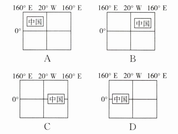 1.(教材P3活动1改编)下图中能正确表示我国半球位置的是 (
