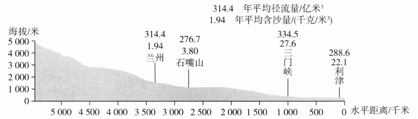 例1 (教材P62活动2改编)“黄河宁,天下平。”保护黄河是事关中华民族伟大复兴的千秋大计。下图为黄河干流纵剖面示意及主要水文站观测数据。据此完成下列问题。