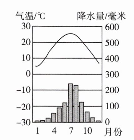 材料三 下图为四川省和周边区域示意图、四川某地气温年变化曲线和逐月降水量柱状图。