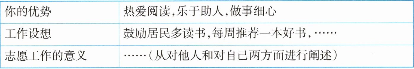I have several advantages. As an avid reader, I know various books well. I'm helpful and careful, so I can assist residents and keep books in order. For work, I'll encourage reading by recommending a weekly book with short reviews. I can also organize reading clubs. Volunteering is meaningful: it helps others gain knowledge and enriches my life by improving my skills.