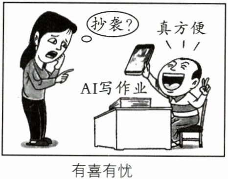 8.A 解析本题考查合理利用网络。网络是把双刃剑,有利有弊,漫画里孩子借助AI写作业,不能独立思考,没有正确使用网络资源,启示我们要合理利用网络,A正确;沉迷网络会影响学习,但合理使用网络有利于学习,B错误;漫画没有体现保持学习兴趣的相关内容,C不符合题意;借助AI写作业不利于开发创造潜力,D错误。