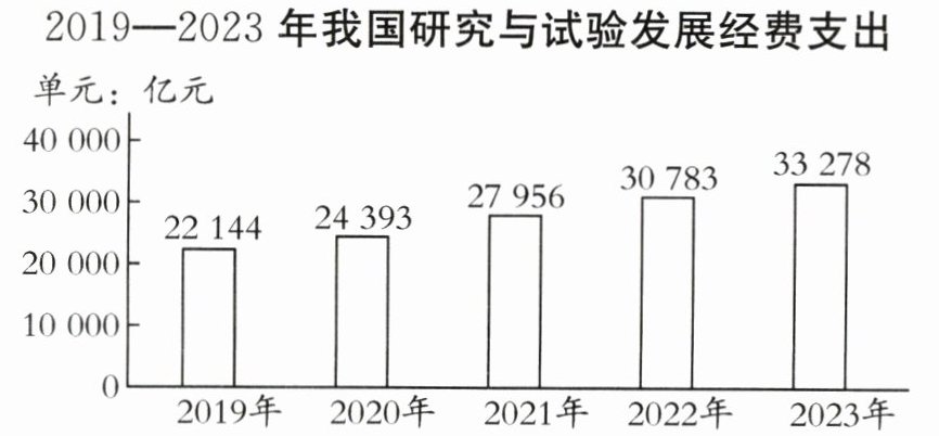 15.党的十一届三中全会以来,滚滚向前的改革春潮,造就了蓬勃发展的今日中国。中国已成为全球研发经费投入第二大经济体,近五年研究与试验发展经费支出见下表: