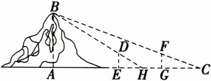 [真题再现] (2021·全国乙卷)魏晋时刘徽撰写的《海岛算经》是有关测量的数学著作,其中第一题是测量海岛的高。如图,点E,H,G在水平线AC上,DE和FG是两个垂直于水平面且等高的测量标杆的高度,称为“表高”,EG称为“表距”,GC和EH都称为“表目距”,GC与EH的差称为“表目距的差”,则海岛的高AB = (
