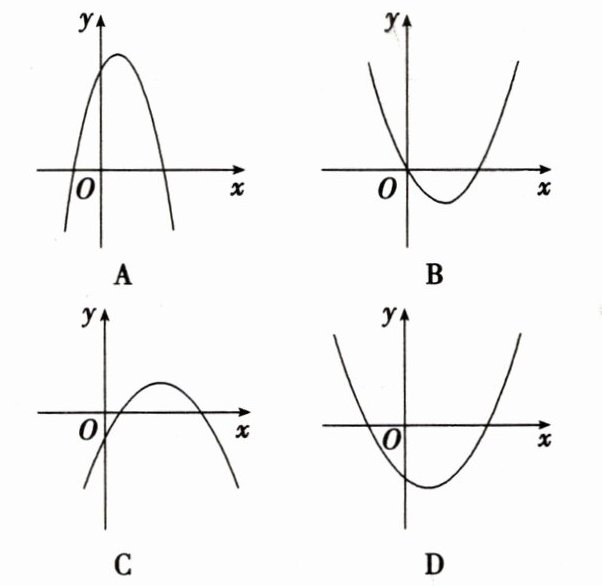 2. 已知函数$f(x) = ax^2 + bx + c$,若$a > b > c$且$a + b + c = 0$,则它的图象可能是(