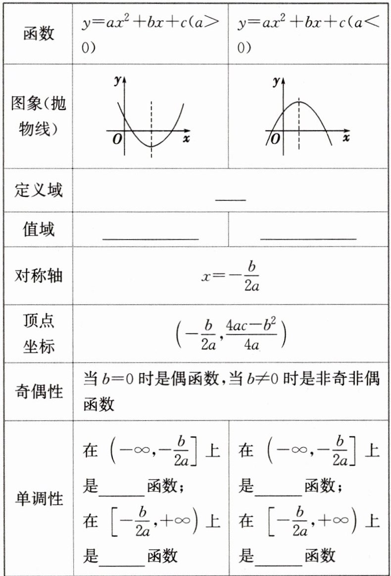2.R $\left[\frac{4ac - b^{2}}{4a},+\infty\right)$ 减 增 增 减