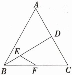 3. (一题多解)(2024·四川绵阳诊断)如图,在边长为 $ 2 $ 的等边 $ \triangle ABC $ 中,点 $ E $ 为中线 $ BD $ 的三等分点(靠近点 $ B $),点 $ F $ 为 $ BC $ 的中点,则 $ \overrightarrow{FE} · \overrightarrow{FC} = $(