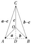 典例3 D 因为$a + b + c = 0$,所以$a + b = -c$,即$a^2 + b^2 + 2a· b = c^2$,即$1 + 1 + 2a· b = 2$,所以$a· b = 0$. 如图,设$OA = a$,$OB = b$,$OC = c$,由题知,$OA = OB = 1$,$OC = \sqrt{2}$,$\triangle OAB$是等腰直角三角形,$AB$边上的高$OD = \frac{\sqrt{2}}{2}$,$AD = \frac{\sqrt{2}}{2}$,所以$CD = CO + OD = \sqrt{2} + \frac{\sqrt{2}}{2} = \frac{3\sqrt{2}}{2}$,$\tan\angle ACD = \frac{AD}{CD} = \frac{1}{3}$,$\cos\angle ACD = \frac{3}{\sqrt{10}}$,$\cos\langle a - c, b - c\rangle = \cos\angle ACB = \cos2\angle ACD = 2×(\frac{3}{\sqrt{10}})^2 - 1 = \frac{4}{5}$. 故选D.