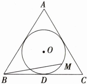 典例1 C 设圆O与AB,AC边分别相切于点E、点N,由题知$,BM = x\overrightarrow{BA} + y\overrightarrow{BD}=2x · \frac{1}{2}\overrightarrow{BA} + y\overrightarrow{BD}=2x\overrightarrow{BE} + y\overrightarrow{BD},$如图,作出定值k为1的等和线DE,DE与BO相交于点P,AC是过圆上的点最远的等和线,当M在N点所在的位置时,2x + y最大,设2x + y = k,则$k = \frac{|\overrightarrow{NB}|}{|\overrightarrow{PB}|}=2,$所以2x + y的最大值为2.故选C.