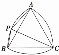 3. (2025·安徽池州模拟)莱洛三角形,也称圆弧三角形,是一种特殊三角形,在建筑、工业上应用广泛,如图所示,分别以正三角形$ABC$的顶点为圆心,以边长为半径作圆弧,由这三段圆弧组成的曲边三角形即为莱洛三角形,已知$A$,$B$两点间的距离为$2$,点$P$为$\widehat{AB}$上的一点,则$\overrightarrow{PA} · (\overrightarrow{PB} + \overrightarrow{PC})$的最小值为