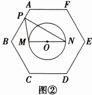 1. (2024·北京朝阳高三专题练习)窗花是贴在窗纸或窗户玻璃上的剪纸,是中国古老的传统民间艺术。图①是一张由卷曲纹和回纹构成的正六边形剪纸窗花。图②中正六边形$ABCDEF$的边长为$4$,圆$O$的圆心为该正六边形的中心,圆$O$的半径为$2$,圆$O$的直径$MN // CD$,点$P$在正六边形的边上运动,则$\overrightarrow{PM} · \overrightarrow{PN}$的最小值为(