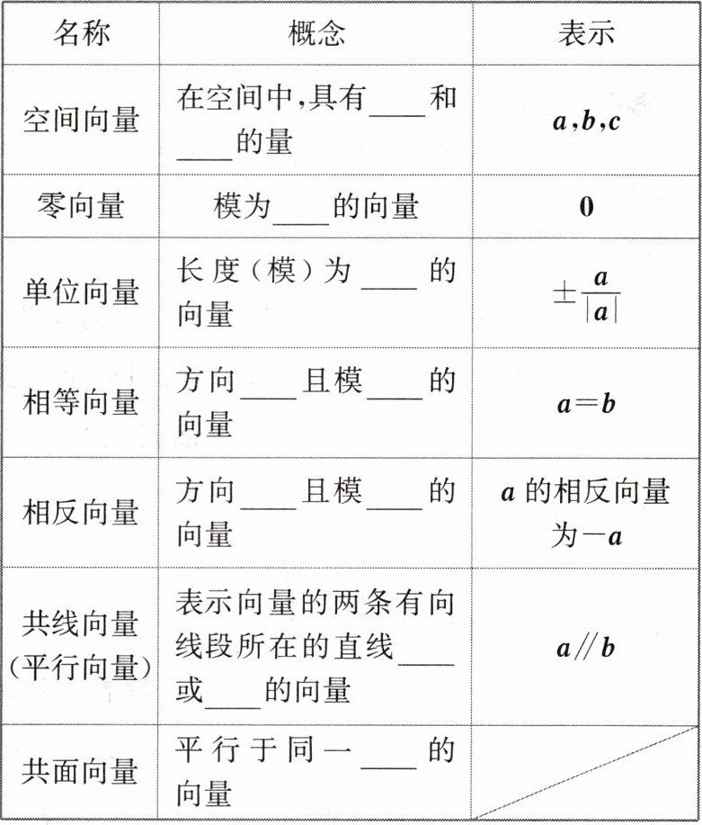 大小 方向 0 1 相同 相等 相反 相等 平行 重合 平面