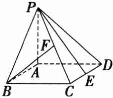 (1)B 如图,以点$A$为坐标原点,以$AB,AD,AP$所在直线分别为$x$轴、$y$轴、$z$轴,建立空间直角坐标系,设$AB = 2$,异面直线$BF$与$PE$的夹角为$\theta$,则$A(0,0,0),B(2,0,0),C(2,2,0),D(0,2,0),E(1,2,0),F(1,1,1)$,所以$\overrightarrow{BF}=(-1,1,1),\overrightarrow{PE}=(1,2,-2)$,所以$\cos\theta=\vert\cos\langle\overrightarrow{BF},\overrightarrow{PE}\rangle\vert=\frac{\vert\overrightarrow{BF}·\overrightarrow{PE}\vert}{\vert\overrightarrow{BF}\vert\vert\overrightarrow{PE}\vert}=\frac{\vert -1 + 2 - 2\vert}{\sqrt{3}×3}=\frac{\sqrt{3}}{9}$,所以异面直线$BF$与$PE$的夹角的余弦值为$\frac{\sqrt{3}}{9}$.故选B.