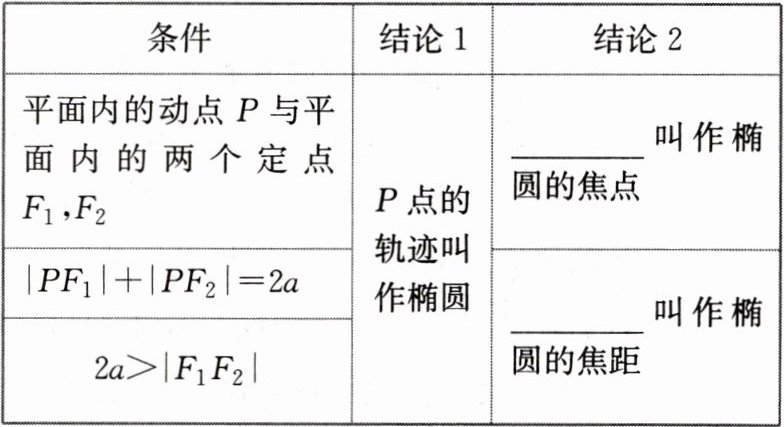 [微提醒] 在数学表达式$\vert PF_1\vert+\vert PF_2\vert = 2a$中:若$2a=\vert F_1F_2\vert$,则动点的轨迹为线段$F_1F_2$;若$2a<\vert F_1F_2\vert$,则动点的轨迹不存在.