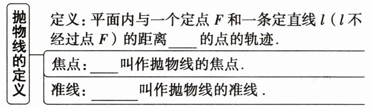 叫作抛物线的准线.[微提醒] 当定点 $ F \in l $ 时,轨迹为过定点 $ F $ 与定直线 $ l $ 垂直的一条直线.