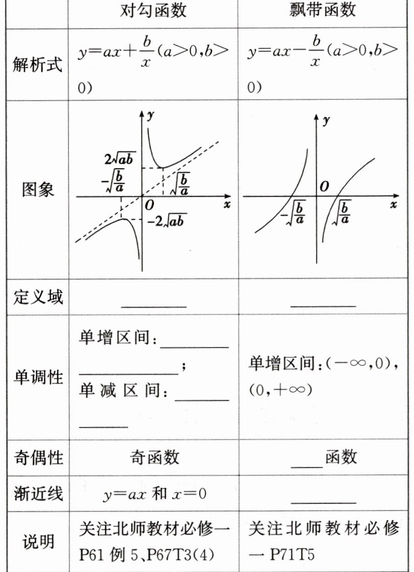 2.$\{x \mid x \neq 0\}$ $\{x \mid x \neq 0\}$ $\left(-\infty, -\sqrt{\frac{b}{a}}\right),\left(\sqrt{\frac{b}{a}},+\infty\right)$ $\left(-\sqrt{\frac{b}{a}},0\right),\left(0, \sqrt{\frac{b}{a}}\right)$ 奇 $x = 0$