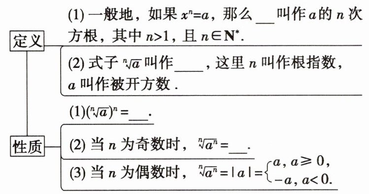 .当$n$为偶数时,$\sqrt[n]{a^{n}}=\vert a\vert=\begin{cases}a,a\geqslant0,\\ -a,a<0.\end{cases}$