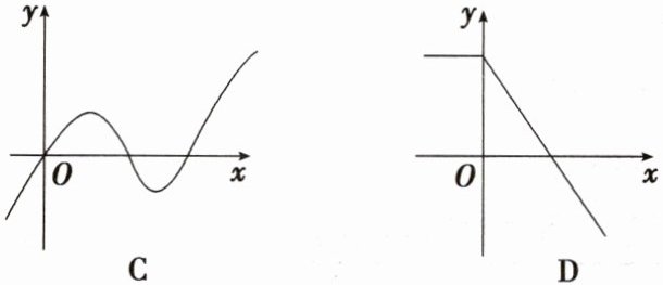 2. (链接北师必修一 P132T1,改编) 下列函数图象与 $ x $ 轴均有交点,其中不能用二分法求图中函数零点的是 (