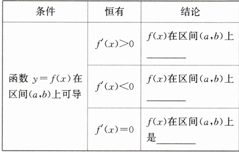 [微提醒] “$ f'(x) > 0 $ 在 $ (a,b) $ 上成立”是“$ f(x) $ 在 $ (a,b) $ 上单调递增”的充分不必要条件.