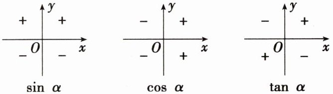 (2)三角函数值在各象限内的符号:一全正、二正弦、三正切、四余弦,如图.