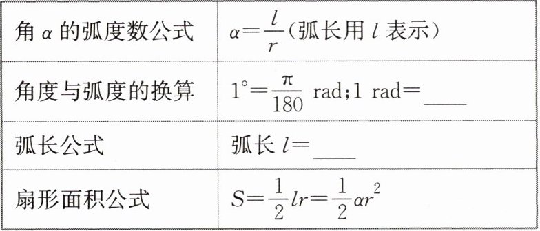 (1)弧度的概念:在单位圆中,把长度等于的弧所对的圆心角称为 $1$ 弧度的角,弧度单位用符号 $rad$ 表示. 以作为单位来度量角的方法,称作弧度制.