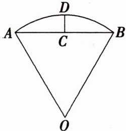 (2)如图,由题意得,$AB = 2\sqrt{3}CD$,弧田面积 = $\frac{1}{2} × (2\sqrt{3}CD · CD + CD^{2}) = 4\sqrt{3} + 2$,解得CD = 2,所以$AD = 2\sqrt{3}$。设圆半径为r,则有$AO^{2} = AD^{2} + OD^{2}$,即$r^{2} = (2\sqrt{3})^{2} + (r - 2)^{2}$,解得$r = 4$,所以$OD = 2$,则在$Rt\triangle AOD$中,$\angle AOD = \frac{\pi}{3}$,所以$\angle AOB = \frac{2\pi}{3}$,所以所求弧长为$4 × \frac{2\pi}{3} = \frac{8\pi}{3}$,故选D。