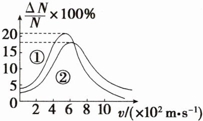 D.速率分布曲线①、②与横轴围成图形的面积相等