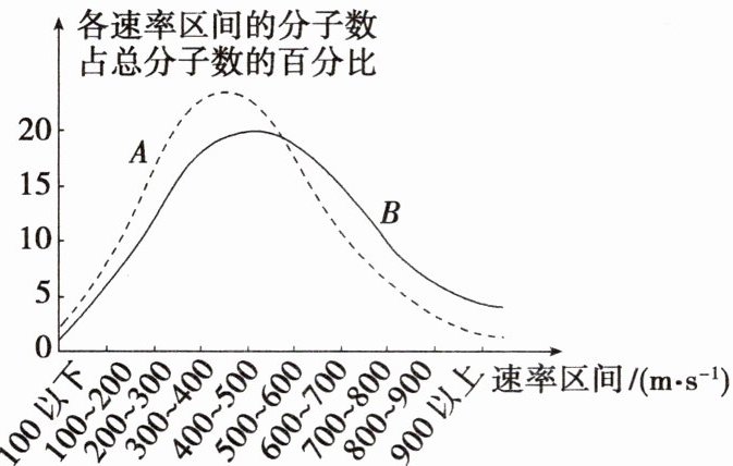 【师生互动】 1859年麦克斯韦从理论上推导出了气体分子速率的分布规律,后来有许多实验验证了这一规律。如图为氧气分子在0 ℃和100 ℃两种不同温度下各速率区间的分子数占总分子数的百分比随气体分子速率的变化图像。