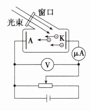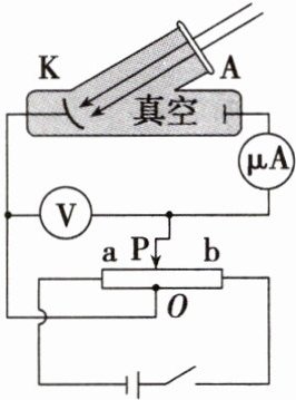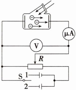 (2)用频率为$ν_2$的光照射光电管,重复(1)中的步骤,记下电压表的示数$U_2。$