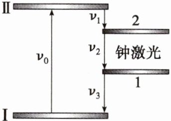 针对练2.(2023·山东高考)“梦天号”实验舱携带世界首套可相互比对的冷原子钟组发射升空,对提升我国导航定位、深空探测等技术具有重要意义。如图所示为某原子钟工作的四能级体系,原子吸收频率为$ν_0$的光子从基态能级Ⅰ跃迁至激发态能级Ⅱ,然后自发辐射出频率为$ν_1$的光子,跃迁到钟跃迁的上能级2,并在一定条件下可跃迁到钟跃迁的下能级1,实现受激辐射,发出钟激光,最后辐射出频率为$ν_3$的光子回到基态。该原子钟产生的钟激光的频率$ν_2$为(