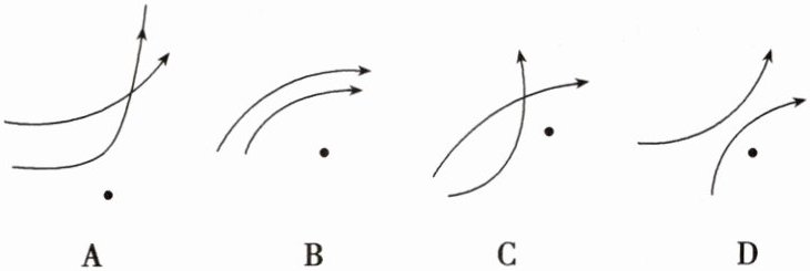 (2025·河北邢台邢襄联盟高二联考)如图所示为卢瑟福α粒子散射实验的金原子核和两个α粒子的径迹,其中可能正确的是(