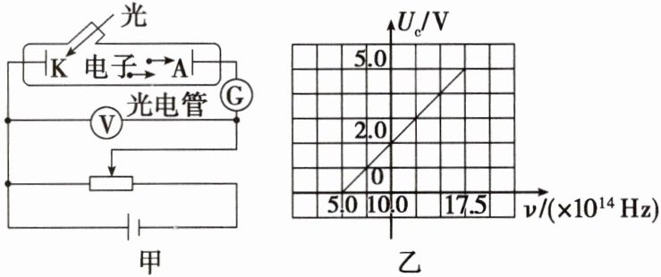 D.分别用不同频率的光照射之后绘制U_c−ν图像(ν为照射光频率,图乙为其中一小组绘制的图像),图像的斜率可能不同